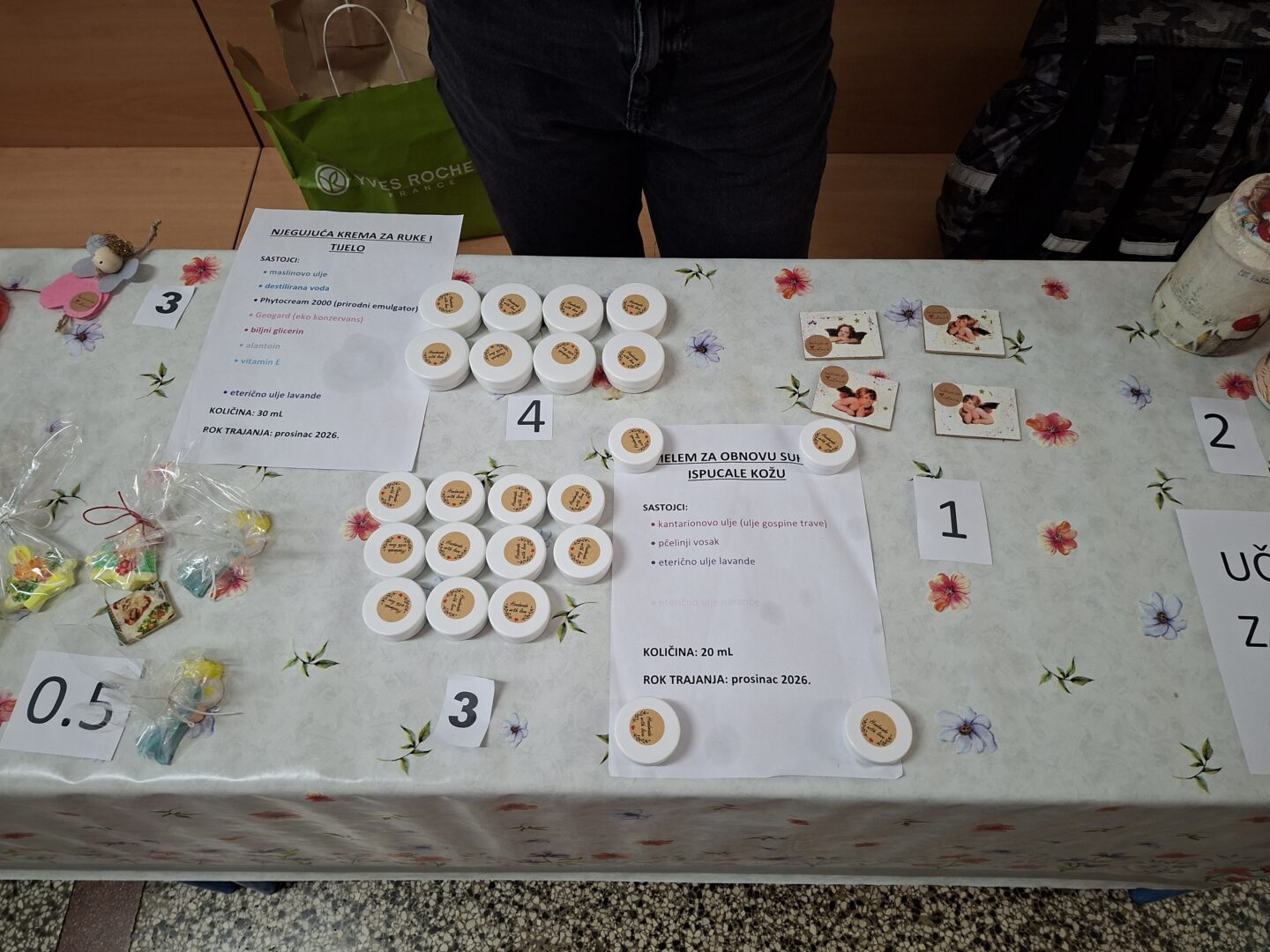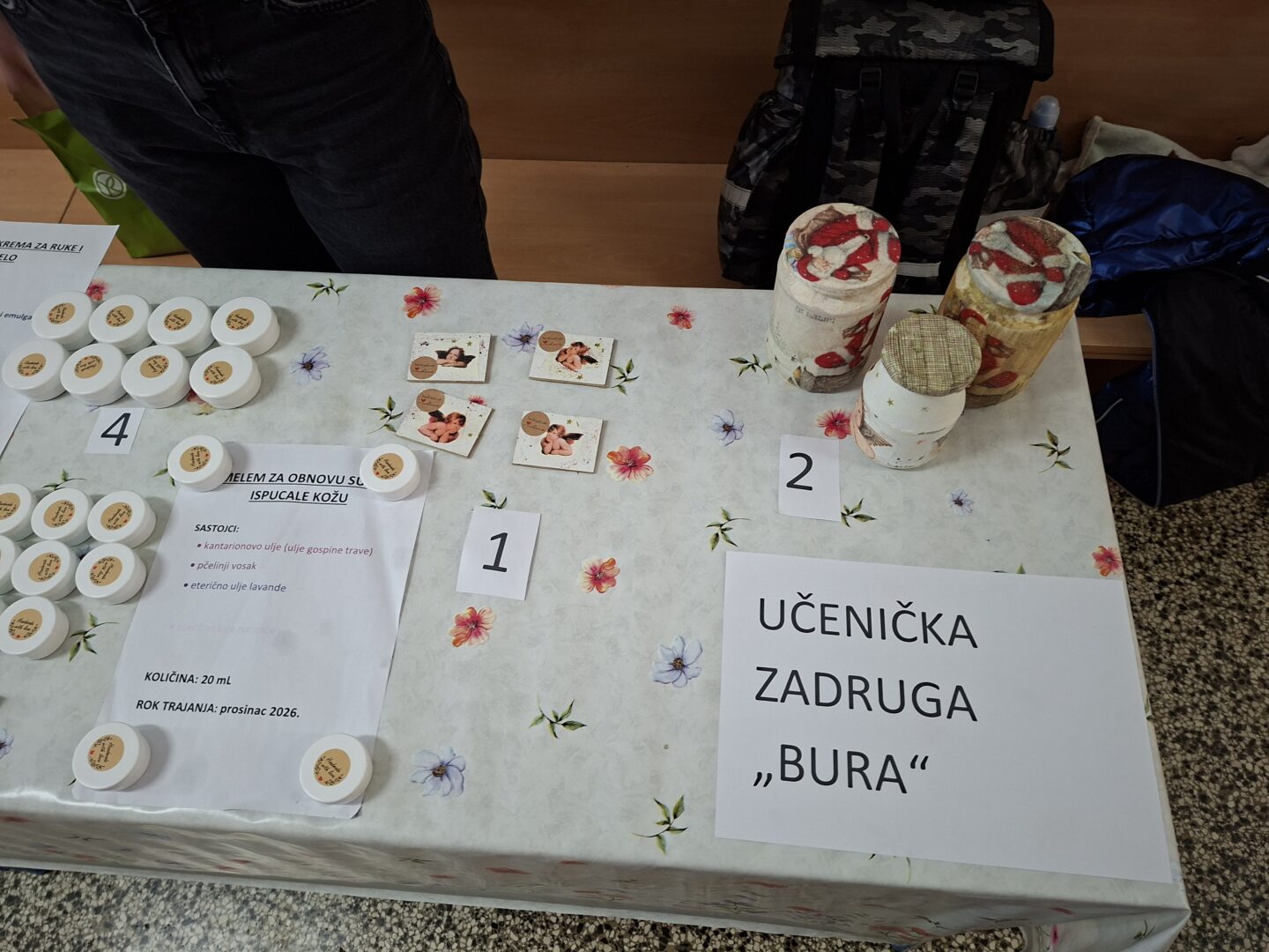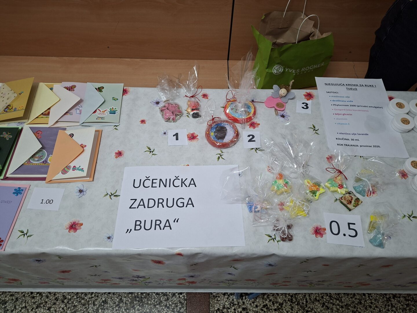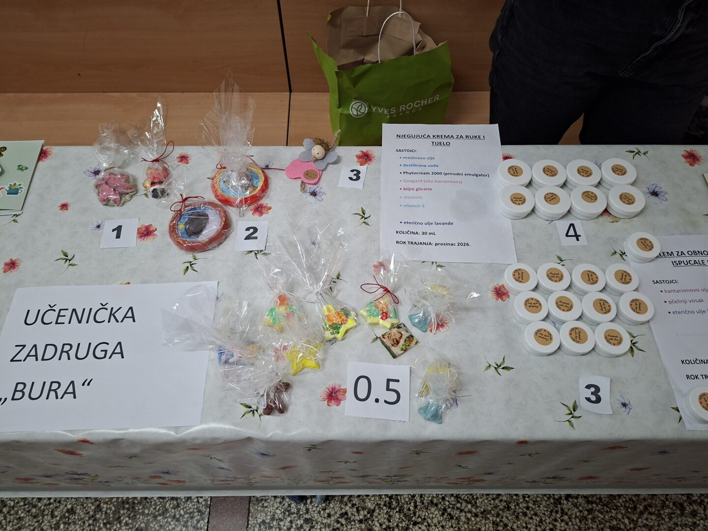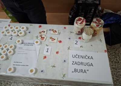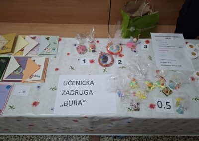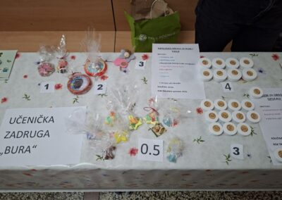 Na sajmu su se prodavali proizvodi koje su izrađivali učenici i učiteljice (1. i 2.r. MŠ Obrovac, 1. i 3. r. PŠ Žegar) te stručne suradnice (edukacijski rehabilitator i knjižničar), uključeni u program Škole za Afriku. Učenici i učitelji uključeni u Učeničku zadrugu „Bura“ prodavali su proizvode koje su izrađivali u okviru izvannastavnih aktivnosti u školi. Svi proizvodi rađeni su ručno.
